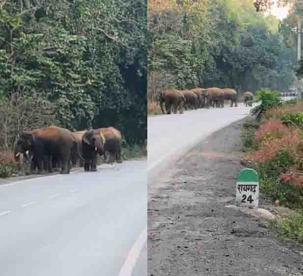 दो दिनों से घरघोड़ा-रायगढ़ रोड पर 25 जंगली हाथियों का दल रोक रहा रास्ता, लोगों ने बनाया वीडियो, हो रहा वायरल