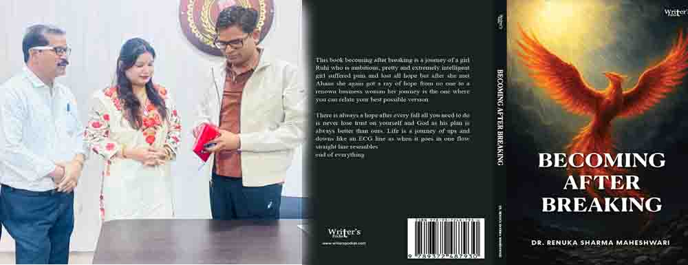 रायगढ़ की बेटी डाॅ रेणुका, स्व. बबीता शर्मा की पुत्री है और बचपन से ही पुस्तक लिखने का शौक रखती थी, इससे पहले उन्होंने अनविल्ड लाईफ टेल्स की उपान्यास लिखी थी जो पाठको के बीच लोकप्रिय रही, उसके बाद उन्होंने ए लव विथ नो पाटिशन नाम की दूसरी पुस्तक लिखी जो एक उपान्यास थी और आज के दौर के युवाओं के लिये कई महत्वपूर्ण घटनाओं का जिक्र लेखिका डाॅ रेणुका ने किया है। 1 मई 2025 को शादी के बाद अपने पति गौरव मंत्री के साथ रेणुका ने मात्र पांच महीनों के भीतर ही अपने कलम के हूनर की धार तेज करते हुए अपनी नई उपान्यास बी कमिंग आफ्टर बे्रकिंग लिखी जिसका विमोचन आज छत्तीसगढ़ के वित्त मंत्री व विधायक ओपी चौधरी ने किया। इस उपान्यास की खासियत है कि युवाओं के लिये एक मोटीवेशन के रूप में उस दौर को फेस करने का संदेश है जिसमें टूटने के बाद आने वाले समय में अपने आपको फिर से बिना किसी सहयोग के खड़ा होनें के लिये प्रेरित करता है। बदलते दौर में युवाओं को लेकर लिखी गई इस उपान्यास में मोटिवेशन के रूप में अन्य कई महत्वपूर्ण घटनाओं का भी जिक्र है और कलम के जरिये डाॅ रेणुका ने बताया है कि जीवन के अनेक पड़ाव में आने वाली कठिनाईयों को फेस करते हुए कैसे आगे बढ़ा जाये और साथ ही साथ संघर्ष करते हुए पीछे देखने की बजाये कैसे कामयाबी पायें जो उपान्यास का महत्वपूर्ण अंश भी है।