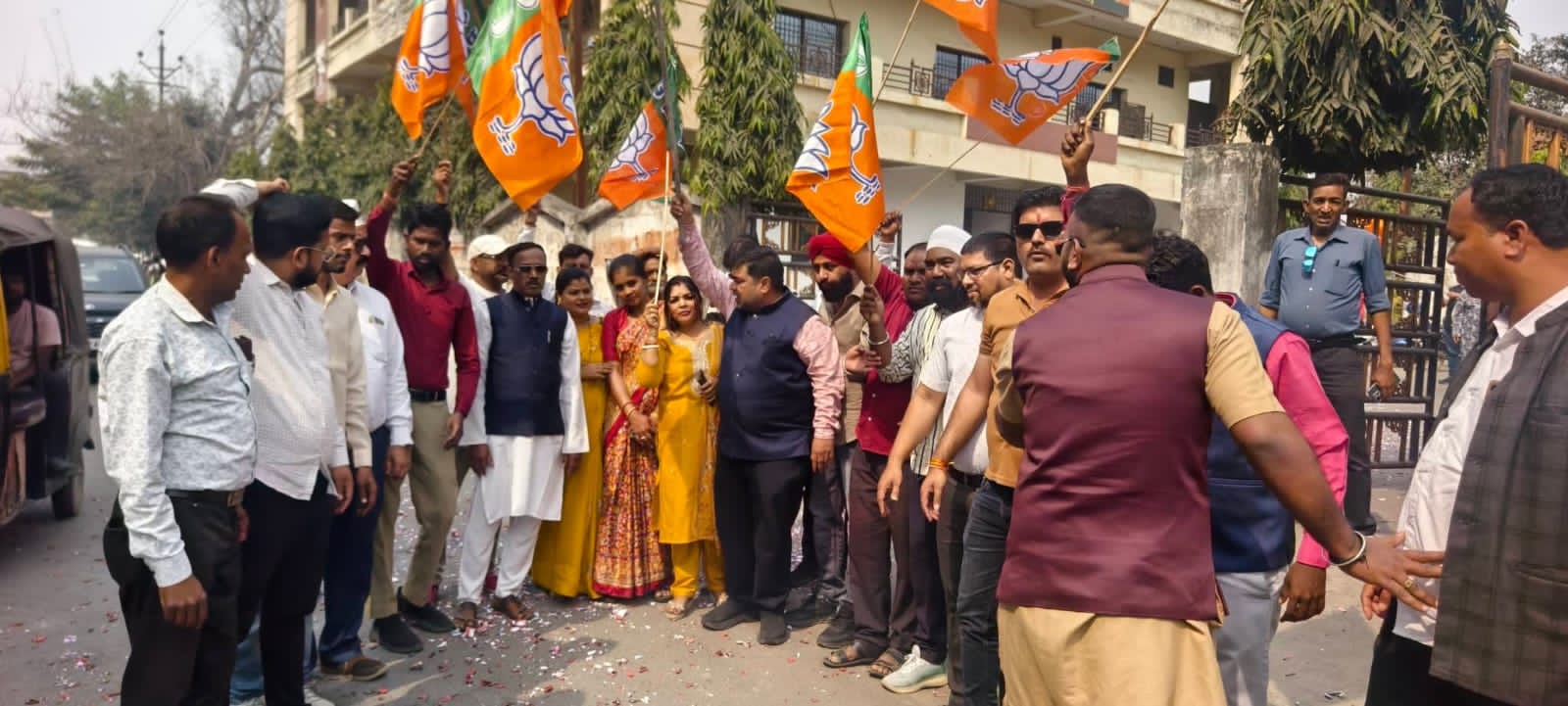 2026-27 के बजट की खुशी में भाजपा कार्यालय में मनाया गया जश्न, आतिशबाजी व मिठाई वितरण
