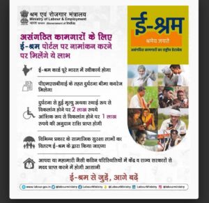 अतः आपको निर्देशित किया जाता है कि उक्त दिनांक को शिविर आयोजित कर अधिक से अधिक पात्र श्रमिकों का चिन्हांकित किया जाकर श्रम-योगी मानधन योजना के तहत पंजीयन किया जाना सुनिश्चित करेगें तथा श्रम विभाग द्वारा चयनित स्थानों में विशेष पंजीयन शिविरों के लिए सी.एस.सी. ऑपरेटर भेजना सुनिश्चित करेगें।